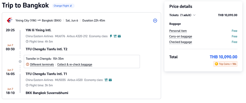 3. เที่ยวบินขากลับระหว่างประเทศ TFU - BKK 30 พฤษภาคม 2026