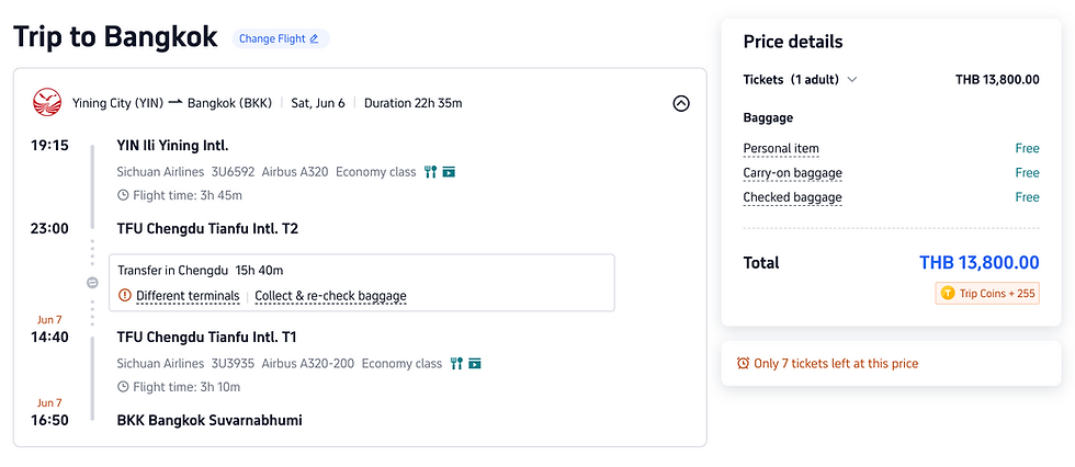 3.เที่ยวบินขากลับระหว่างประเทศ TFU - BKK 7 มิถุนายน 2026